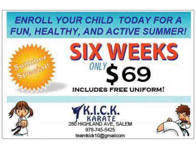 K.I.C.K. Karate of Salem, MA, has donated a Summer 6 Week package of children's karate lessons and a uniform! Youth karate classes foster positive character traits through the study of martial arts.