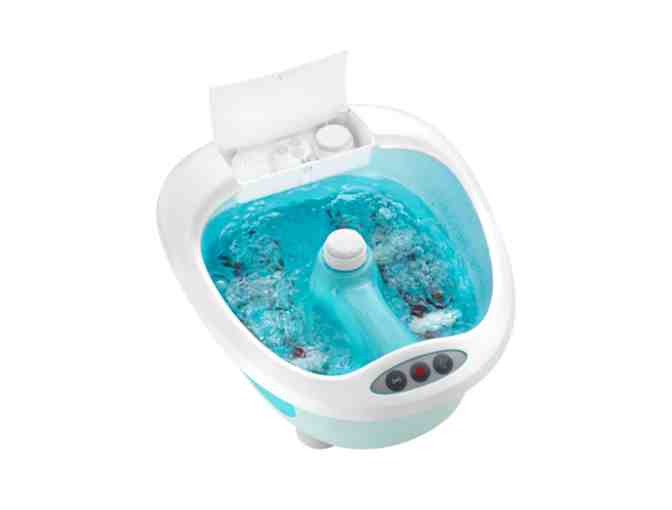The HoMedics Foot Salon Pro with Heat Boost Power delivers effervescent bubbles to soothe tight muscles and overworked feet with a relaxing vibration massage. The four pressure node rollers provide a kneading massage to relax and revitalize your feet. The Foot Salon Pro includes a pedicure center with four attachments to soften and pamper your feet in the comfort of your own home.