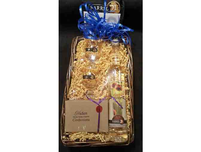 Otto's Pub & Brewery and Barrel 21 Distillery provided a gift basket that includes a sampling of both establishments. It includes a bottle of Barrel 21's Apple Brandy along with a pair of Barrel 21 glasses, a collection of Haden Confections (made locally by chocolatier Andy Rose), a Barrel 21 t-shirt, plus a $50 gift card that may be used at either restaurant.