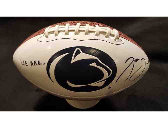 Penn State football signed by Jesse James, currently a tight end for the Pittsburgh Steelers, played for Penn State from 2012-2014.  During his junior season he broke Ted Kwalick’s previous record for career touchdowns by a tight end with eleven (five in his freshman year and three each in his sophomore and junior years).  He finished his Penn State career with 76 receptions for 1,005 yards.  He entered the 2015 NFL draft at the end of his junior year and was drafted in the fifth round by the Steelers.
