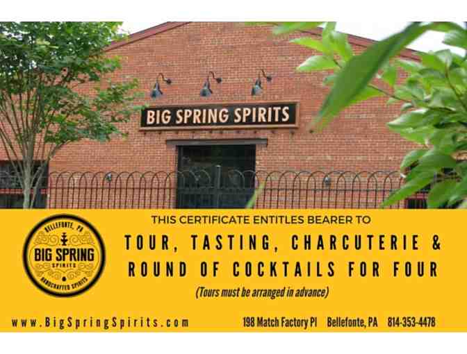 Big Spring Spirits distillery, Tasting Room and cocktail lounge border Talleyrand Park in Bellefonte, Pennsylvania, just 10 miles from Penn State University's main campus. The distillery overlooks the Big Spring, which is the source of the award-winning water that is the linchpin of their fine spirits.