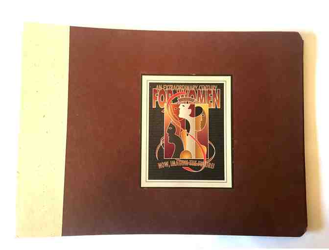 The 12" x 9.5" notebook has the National Womens History Projet (NWHP) logo on the cover and 23 black pages inside.