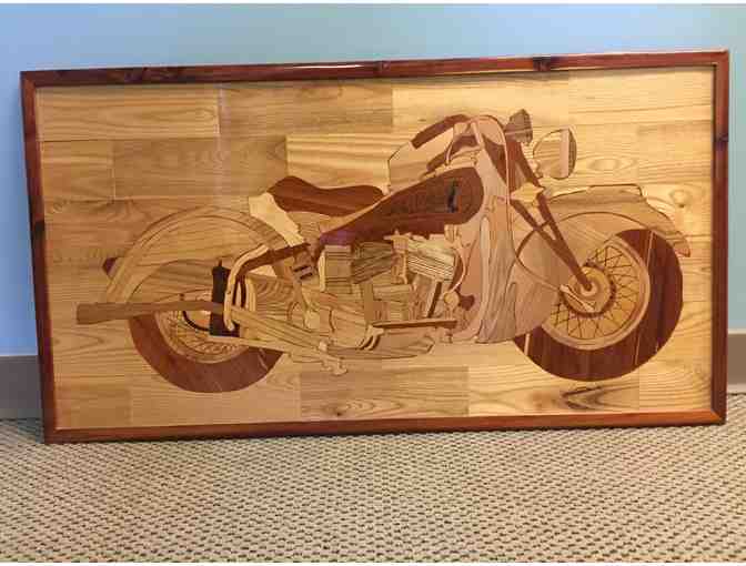 WOODEN INLAY INDIAN MOTORCYCLE WALL HANGING