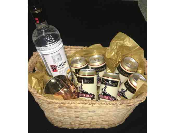 Have a great night with 4 beautiful copper Moscow Mule Mugs. Basket features 1 bottle of Kettle One Vodka and a six pack of ginger beer. Item not available for shipment. Items available for pickup at Happy Hour for Hunger or by June 30 at ICA Food Shelf 12290 St. David's Road, Minnetonka between 9:30-3 M-F.