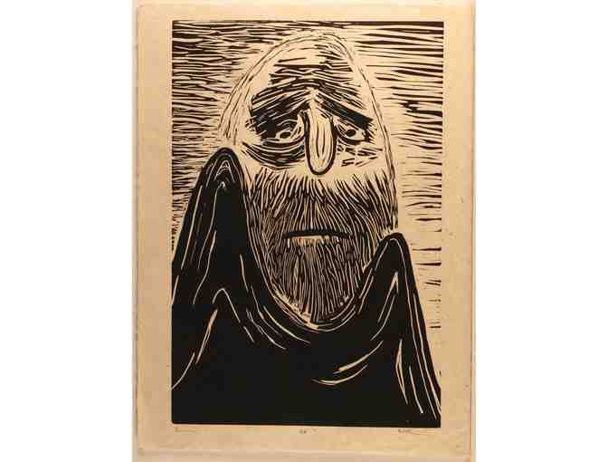 Daruma - An extremely unique and contemporary rendition of Daruma. Signed original wood block print by Bob Dixon Size - [15" x 20"]