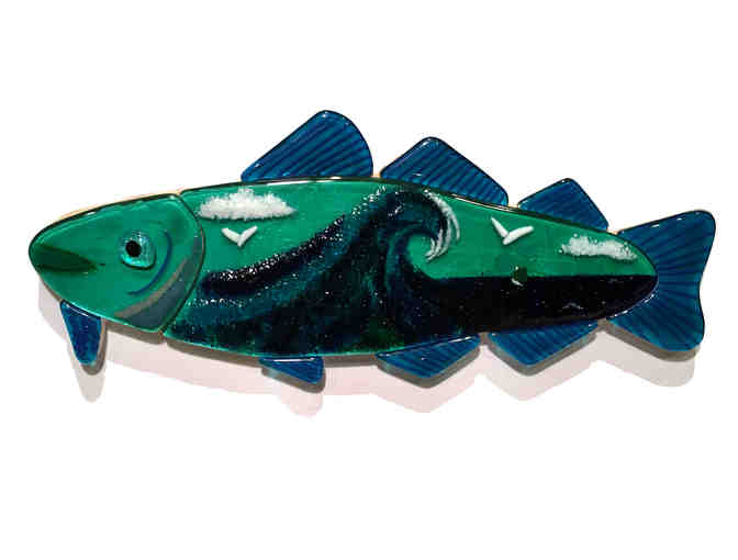 Medium & Size: Kiln-formed glass on wood. 22" L x 8 3/4" H x 1" D. For indoor display only.