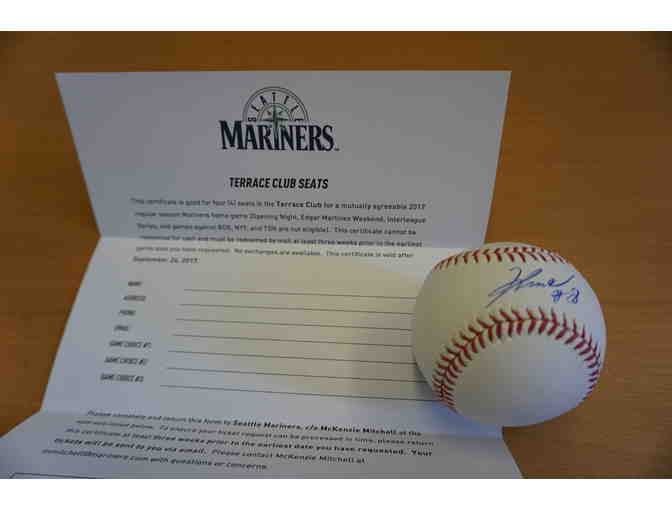 Four (4) Terrace Club Tickets to a Mariner's Game & Hisashi Iwakuma Autographed Baseball