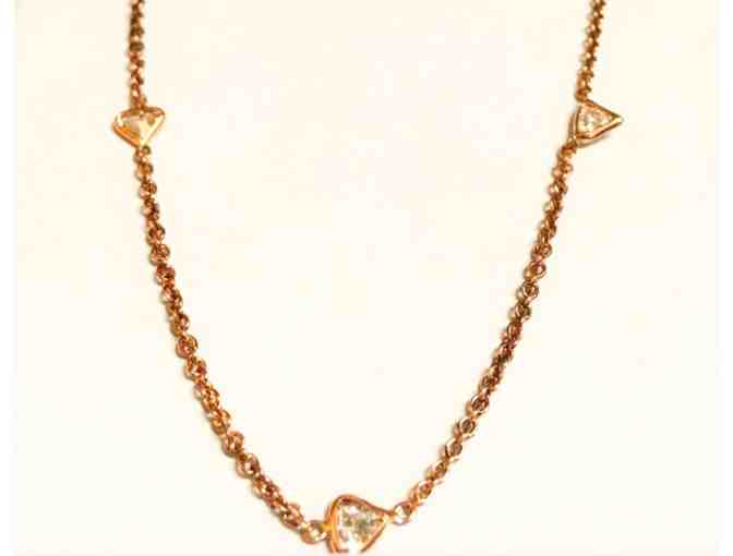 Dress yourself or someone special in this stunning, 14K Rose Gold Diamonds by the yard necklace. The necklace, with 10 trillion-shaped diamonds, extends 18'' in total length.