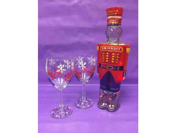 Re-purposed Vodka Bottle Soldier Light & 2 Wine Glasses