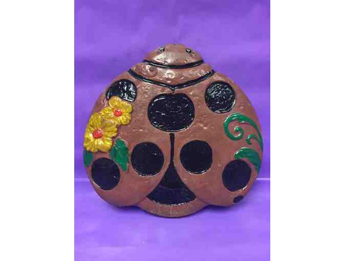 This Lady Bug Stepping Stone is hand painted and made from concrete.