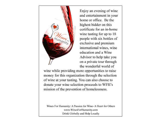 Wines For Humanity In Home Wine tasting with 6 bottles of premium wine for up to 18 people