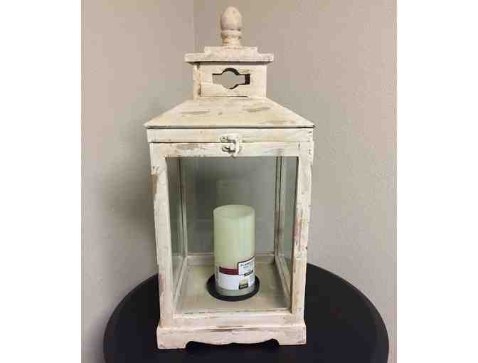 Outdoor lantern and candle. The winning bidder gets to take home a little outdoor ambiance!