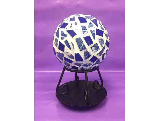 This beutiful hand crafted mosaic ball and stand were donated by Lynda Magril.