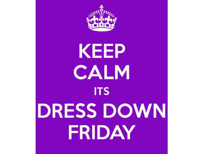 This item is for a student with no siblings at CCA. The winning bidder will be permitted to 'dress down' every Friday until next year's auction.