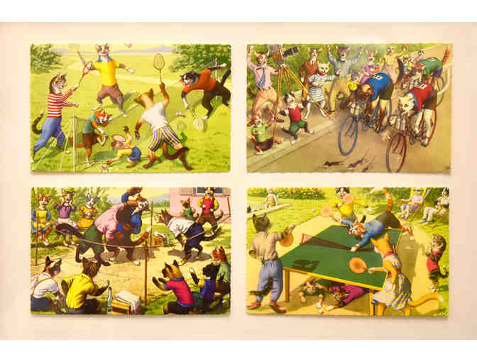 Paper Cat Info: Sporting Summer Cats Enjoying Boxing, Badminton, Cycling and Ping Pong.