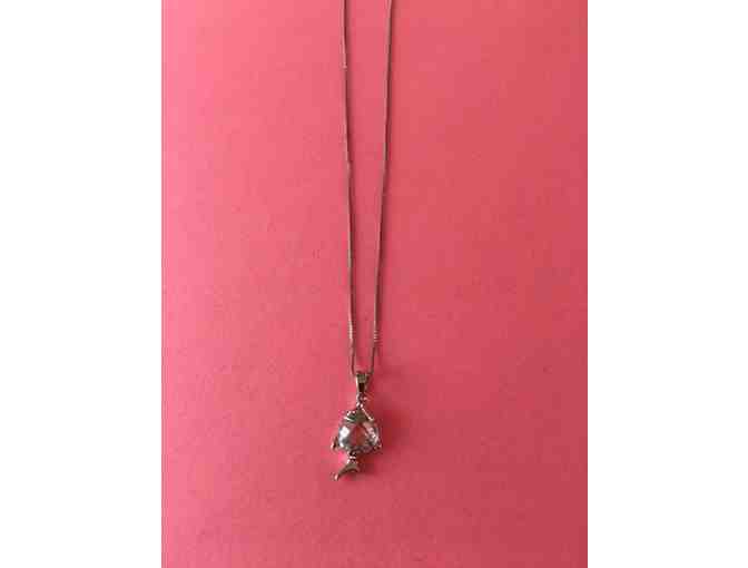 New Shiny Silver Fish Pendant with fish crystal body. Includes a box chain and lobster claw clasp. The chain is adjustable from 16 to 18 inches