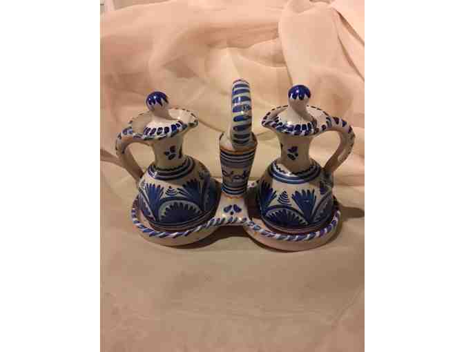 Beautiful oil and vinegar set. Hand made in Segovia Spain. Signed on the bottom.