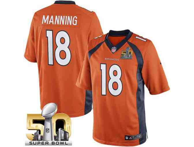 New, Broncos Super Bowl 50 Commemorative Game Jersey. Number 18, Peyton Manning. Men's Size Large. Style is either unavailable or out of stock from the NFL Store.