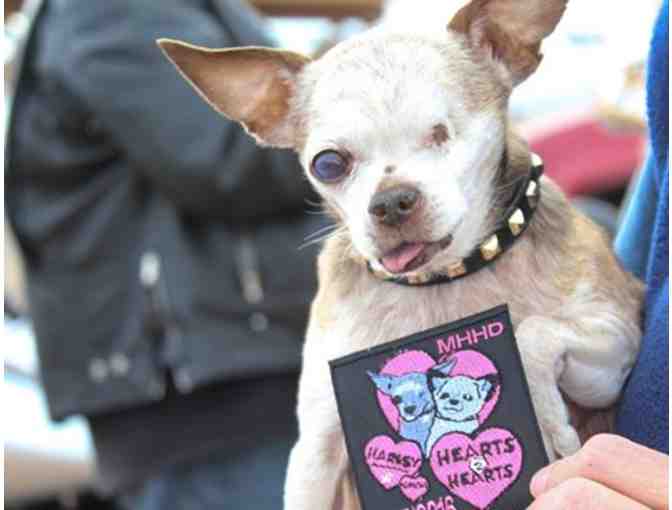 Adorable, commemorative, embroidered, custom-made 'Hearts to Hearts' 2016 rescue campaign patch. Design features Harley and Teddy side by side inside a heart and surrounded by hearts that read "Hearts 2 Hearts", "Harley to the Rescue" and "NMDR". Measures 3" x 4". Only a limited number were produced.