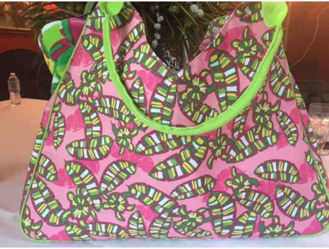 get a beach bag (pink and green) 2 beach towels, inuslated mug and sunscreen. everything you would need for a relaxing day at the beach!!