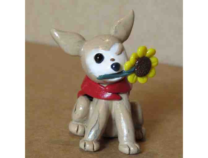 Adorable polymer "Sunflower Harley" measures approximately 1 3/4" tall. Custom made by artists, Janie Janich and Dena Handel of Sparky's Wonderland. What better way to show your love for Harley than this precious figurine. Sure to attract attention no matter where it's displayed leaving plenty of room to tell admirers about Harley and Harley's Dream!