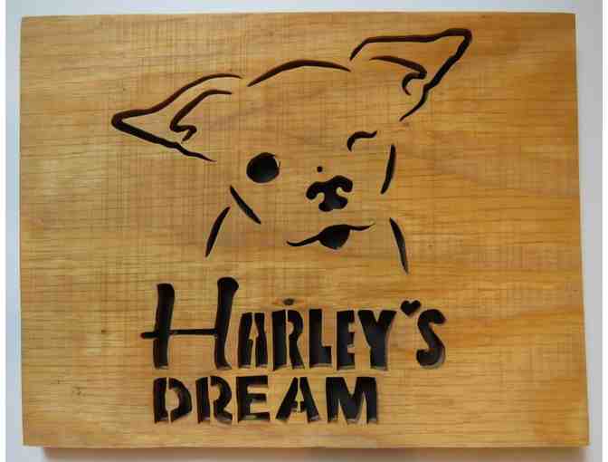New. Made of furniture grade plywood, hand sanded and hand stained. Measures 11" x 8.5" Made by Shop Zoo Crew & Beast Bag Boutique. Proudly display this beautiful handmade sign of the Harley's Dream logo in your home or office. Makes a great tool for starting a conversation about Harley and ending puppy mills!