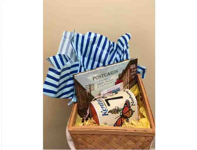 Now this is an item to write home about! Basket includes a birdhouse crafted from a Kentucky liscense plate, Postcards from Kentucky book, and a $100 gift card to Poor Richard's Bookstore.