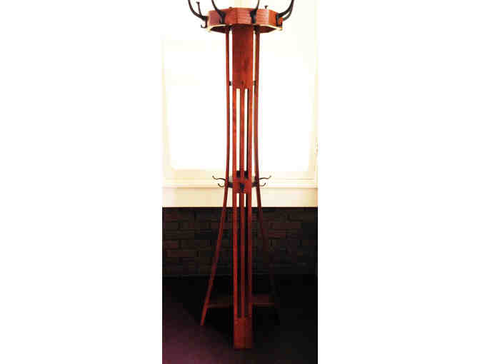 This beautiful, tall, revolving-top, white oak hall tree would be a welcome addition to nearly any home entry.