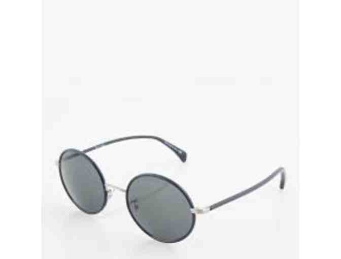 These sunglasses have navy and brushed silver frames, grey gradient lenses and include a Paul Smith Spectacles pouch, case and box.