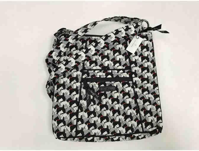 Vera Bradley quilted hipster handbag with Scottie/Westie pattern. Several zip pockets, crossbody adjustable strap.
