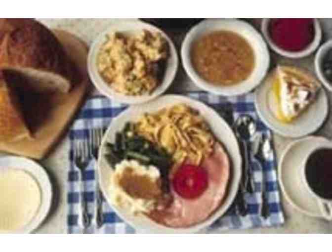 Iron Kettle of Thick Ham and Bean Soup Basket of Freshly Baked Hearth Bread * Churned Butter Apple Butter * Last of the Garden Relish * Sweet & Sour Cabbage Slaw Green Beans with Side Meat Beef & Egg Noodles * Mashed Potatoes & Giblet Gravy Sage Dressing *