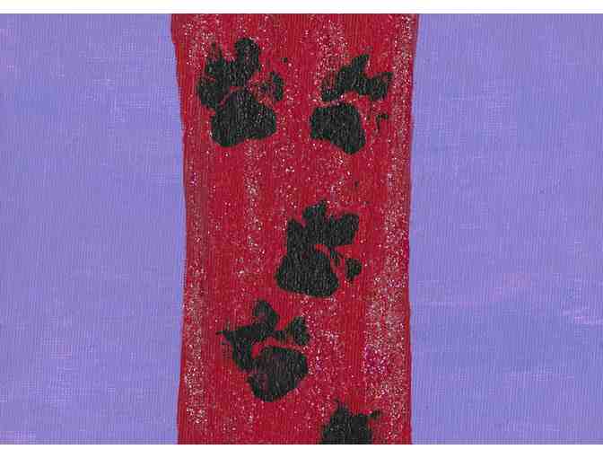 "Toes on the Red Carpet" is #14 in the Art by Teddy 'Where the Toes Can Go' collection. This is a unique, one-of-a-kind painting using non-toxic acrylic paints on a 5" x 7" canvas which includes Teddy's paw prints.