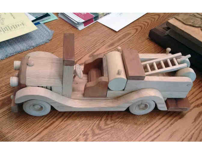 This lovely little wooden fire truck will delight any youngster's heart. Norman Stauffer's attention to detail, and his craftsmanship, make this 14" truck a real delight.