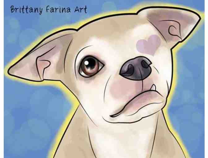 Unique, colorful print by artist Brittany Farina featuring Harley (created in 2013). The print is 8.5" x 11" and has a white border. The print is on glossy paper suitable for framing or dry mounting.