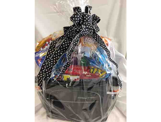 Grab this cooler and head out the door at a moment's notice with this snack-filled delight! Includes cooler, freezer bars, thermal mugs, candy, cookies, and $75 in gift cards to six different eateries--and more!