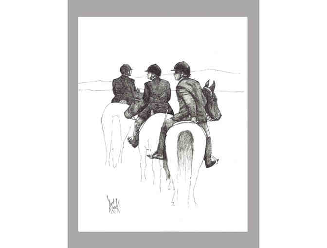 Unique interpretation of a classic Virginia hunt scene in Bob Cronk’s Fox Chase print measuring 8.5” x 11”
