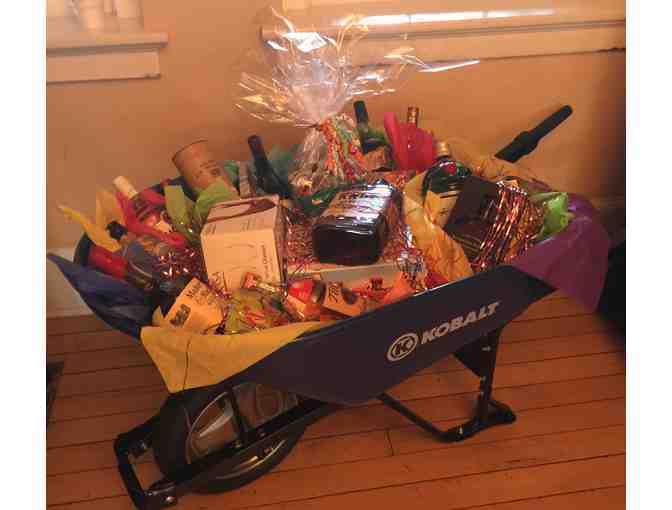 Wheelbarrow and liquor donated by friends of Bluegrass Hospice Care.