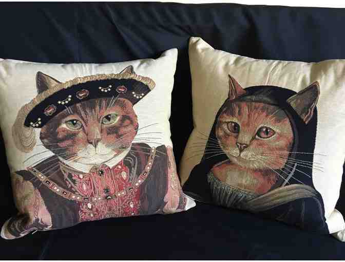 Two stunning woven tapestry pillows from paintings by Susan Herbert, these pillows are so beautiful you may want to display them as art! Beige velvet back with zip fastening. Made in the United Kingdom from the finest quality loom woven tapestry.