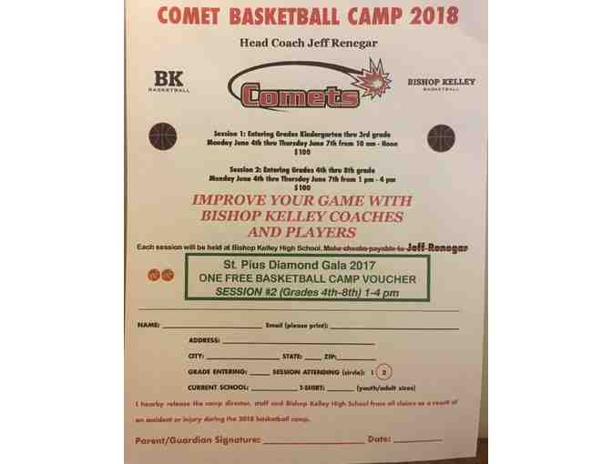 One free Bishop Kelley Comet Basketball Camp voucher for boys session #1 (grades 4th - 8th). Head Coach Jeff Renegar