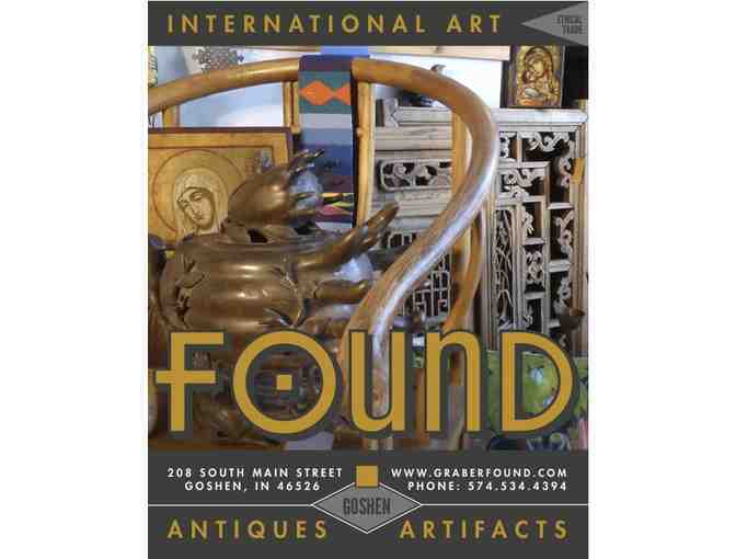 Items #207 and #208 are both $50 gift certificates from FOUND, so you have two chances to bid. Gift cards have no expiration.
