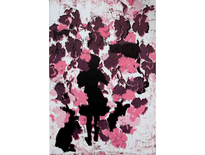 Alice, Cat & Rabbit: Original Woodcut Print By Awarded Artist