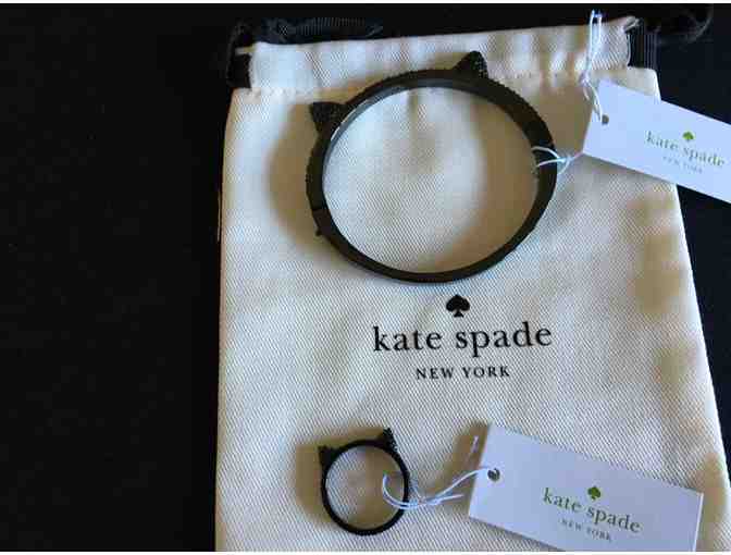 This adorable Kate Spade set with have everyone purring when they see you wearing it! Includes a blank pave cat ear bangle bracelet and ring (size 8). Understated perfection for the classy cat lover!
