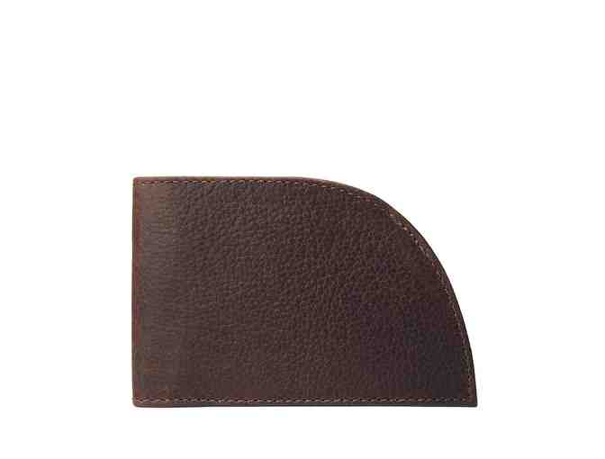 “Classic Made in Maine Edition” RFID-blocking front pocket wallet. Contains three slots and one plastic sleeve. Bourbon color, full-grain leather. Crafted by Rogue Industries in Standish, Maine.