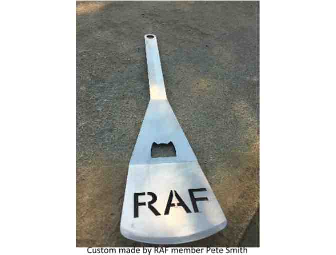 Show up everyone in camp with this custom made spatula and bottle opener. Made of stainless steel by RAF member and craftsman, Pete Smith of Lewiston, Montana.