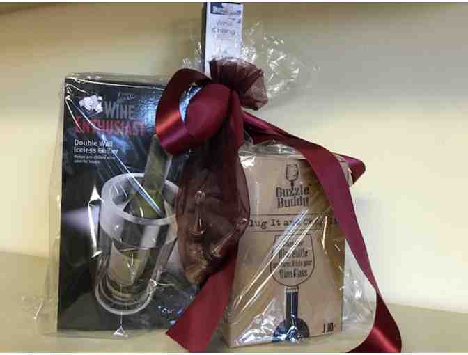 "Just Add Wine" accessories including Guzzle Buddy; wine chilling stick; Double Wall iceless chiller; pourers and stoppers