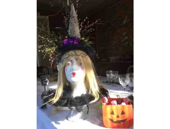 Just in Time for Halloween!!! This is a high quality blond wig with exquisite headband hat and matching boa.