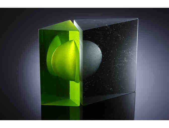 Fiaz Elson, Parallel Verve, 9h x4w x 12d, Lost wax kiln cast glass with an internal lens, 2016