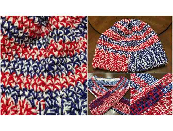 Red, White & Blue Crocheted Hat and Scarf