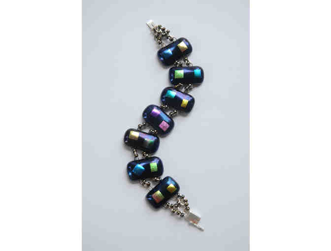 Monroe Davids, Arlene's Confetti Bar Bracelet, 7.5 long, Dichroic fused glass with Sterling Silver Clasp, 2014