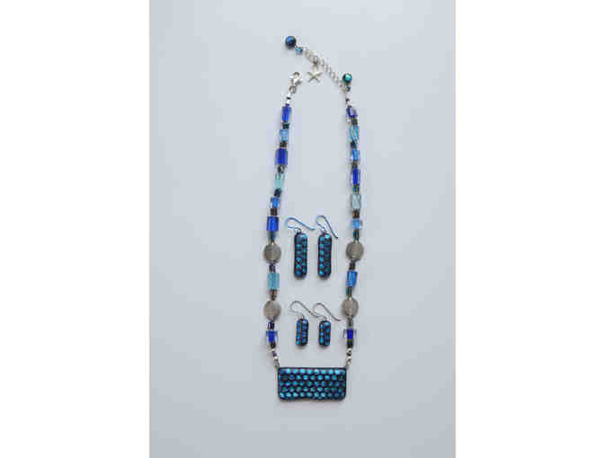 Monroe Davids, Blue Stars Necklace and Earring set, 18 long, Dichroic fused glass necklace and 2 Pairs of earrings, 2010